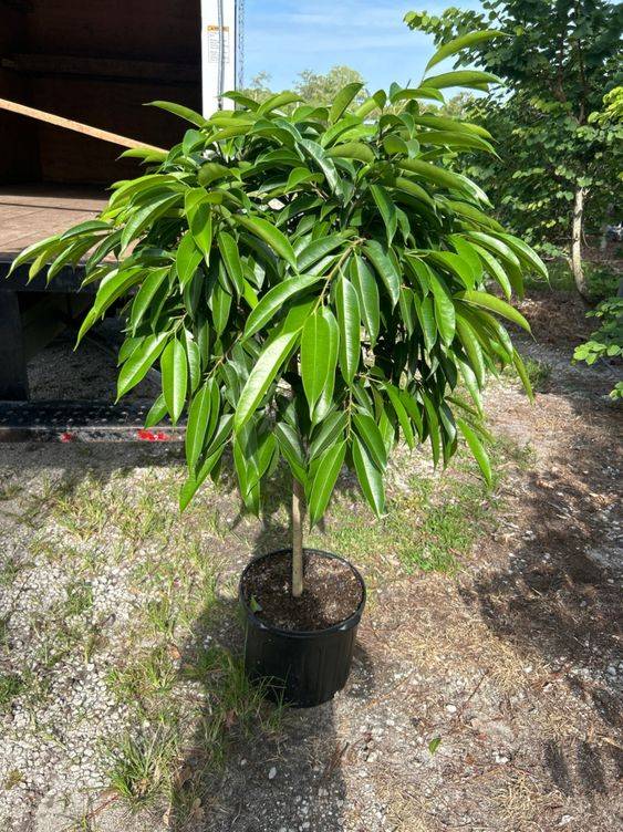 Ficus Amstel King is a tropical tree that belongs to the Ficus family. It is also known as Ficus binnendijkii ‘Amstel King’ or Narrow-leaved Rubber Tree ‘Amstel King’. The plant is native to the humid Indonesian climate and can grow up to 170 cm tall indoors. The bark of a young plant has a brown, dark color, but acquires a grey tint with white stripes as it grows. The leaves are long, elongated, leathery, and glossy, somewhat curved along the middle vein, which is most pronounced on the back of the leaf plate. This evergreen plant bears dark green, shiny leaves that are lanceolate and can be as long as 30 cm and as wide as 6 cm. The petiole grows to 4 cm. Please note that Ficus Amstel King prefers bright places with plenty of indirect sunlight but without direct sunlight. It likes to stand outdoors in summer and requires high humidity. You should regularly spray the plants with soft, lime-free water and rub leaves with a wet sponge.